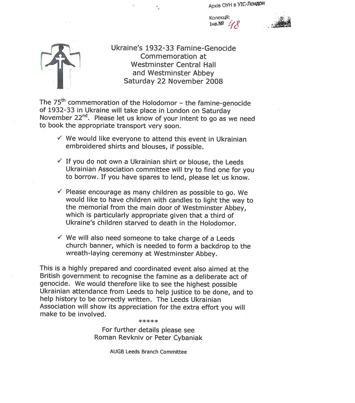 Оголошення про вшанування жертв Голодомору-геноциду 1932-1933 р. в Україні на території Вестмінстерського абатства в Лондоні.