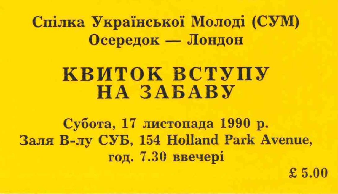 Квиток на забаву СУМ в Лондоні.