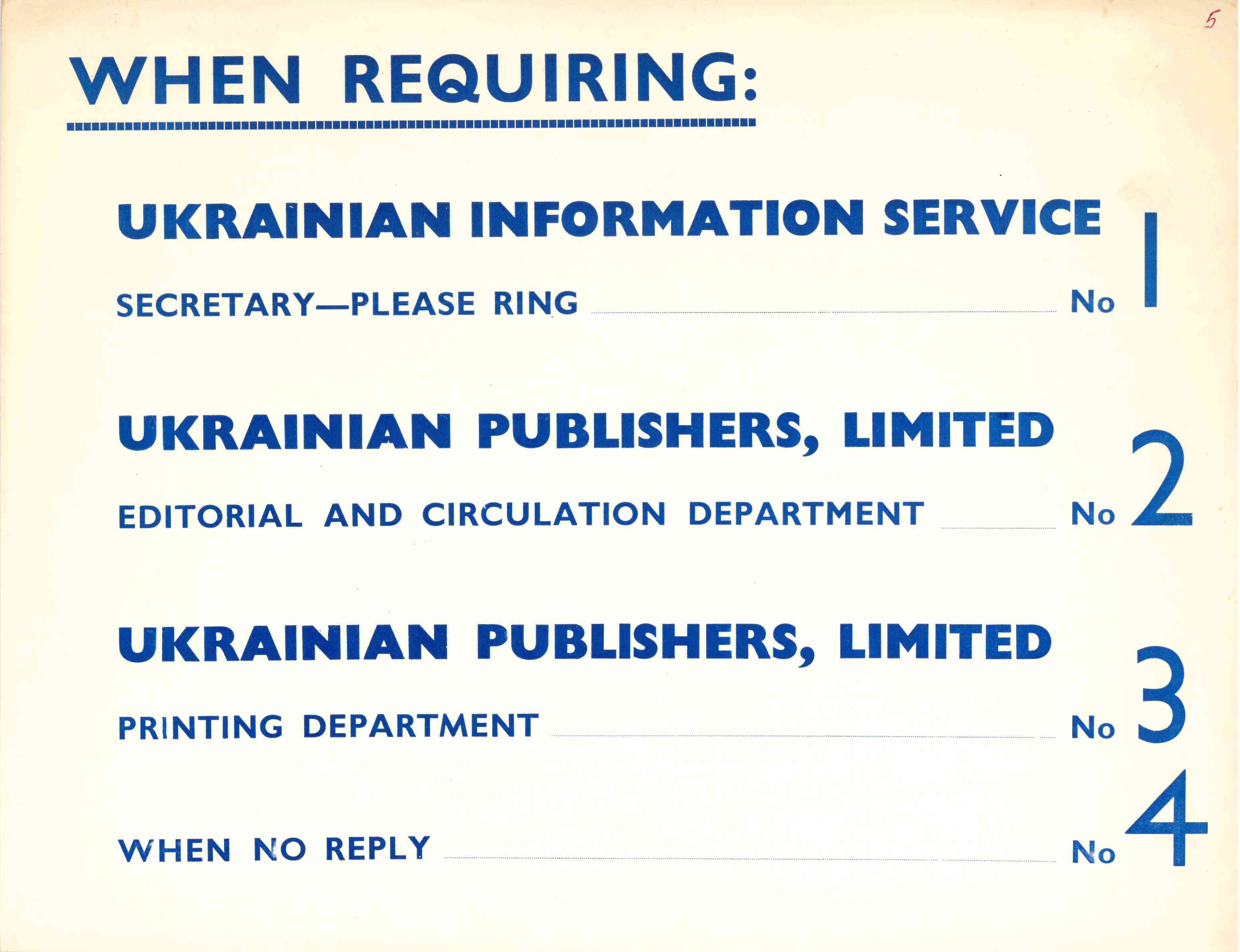 Друковані вивіски і оголошення на двері в Українській Видавничій Спілці / Українській Інформаційній Службі.