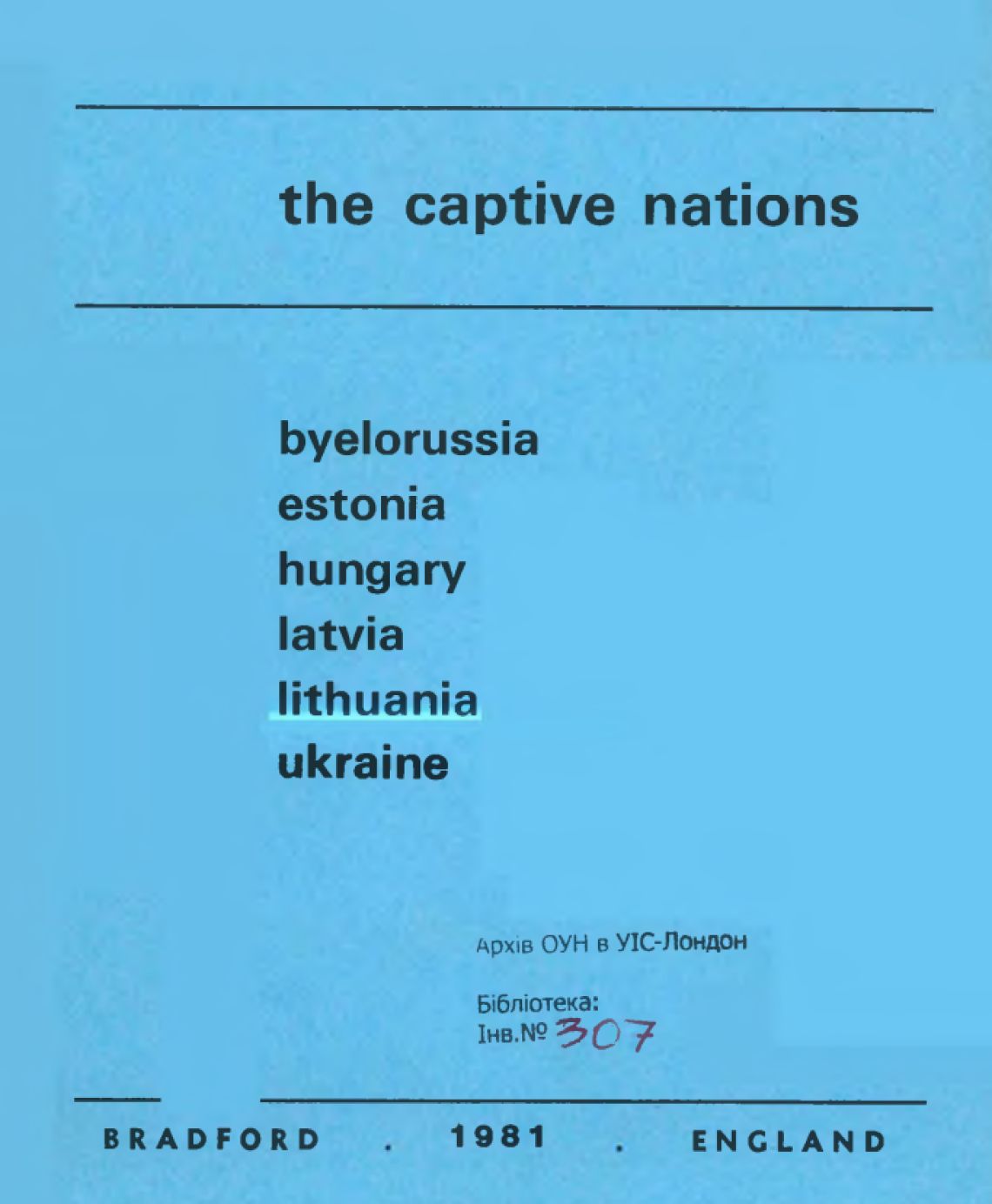 • Місце зберігання: Бібліотека Архіву ОУН в УІС - Лондон