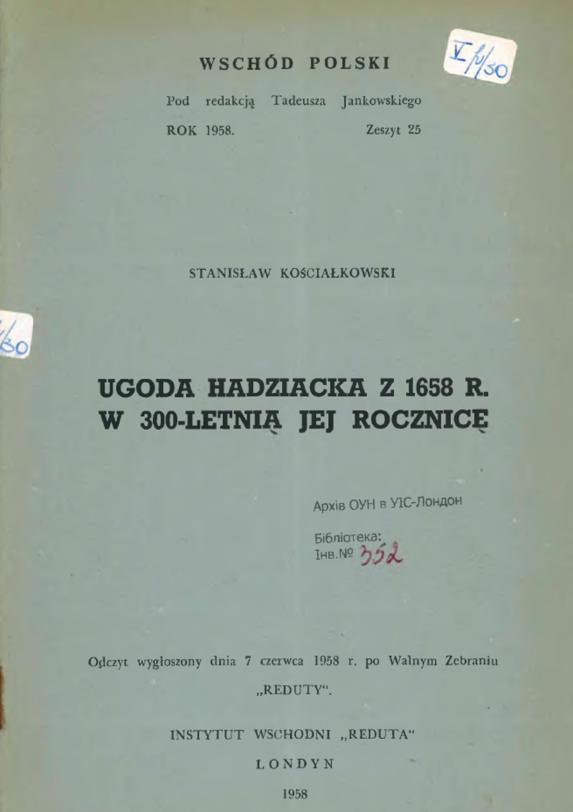 [Ukr.] Книга Ugoda Hadziacka z 1658 r. w 300‑letnią jej rocznicę присвячена історії та значенню Гадяцького договору — важливої політичної угоди між Річчю Посполитою та Україно. У праці розглядаються обставини укладення договору, його політичні та правові положення, а також роль цієї угоди у формуванні концепції федерації трьох народів. Автори аналізують історичний контекст подій середини XVII століття, зокрема діяльність гетьмана Івана Виговського, і оцінюють вплив договору на подальший розвиток польсько-українських відносин.