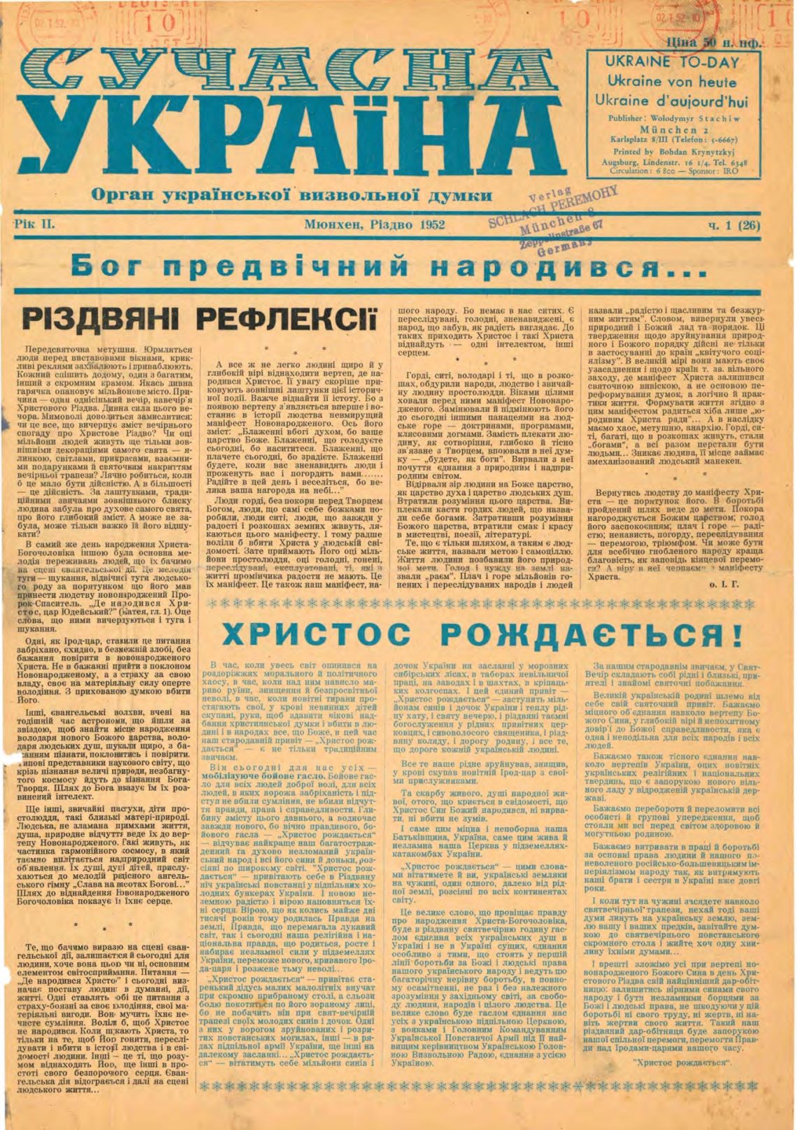 На зберіганні в Архіві ОУН знаходяться річники "Сучасної України" за 1952, 1953, 1954 роки.