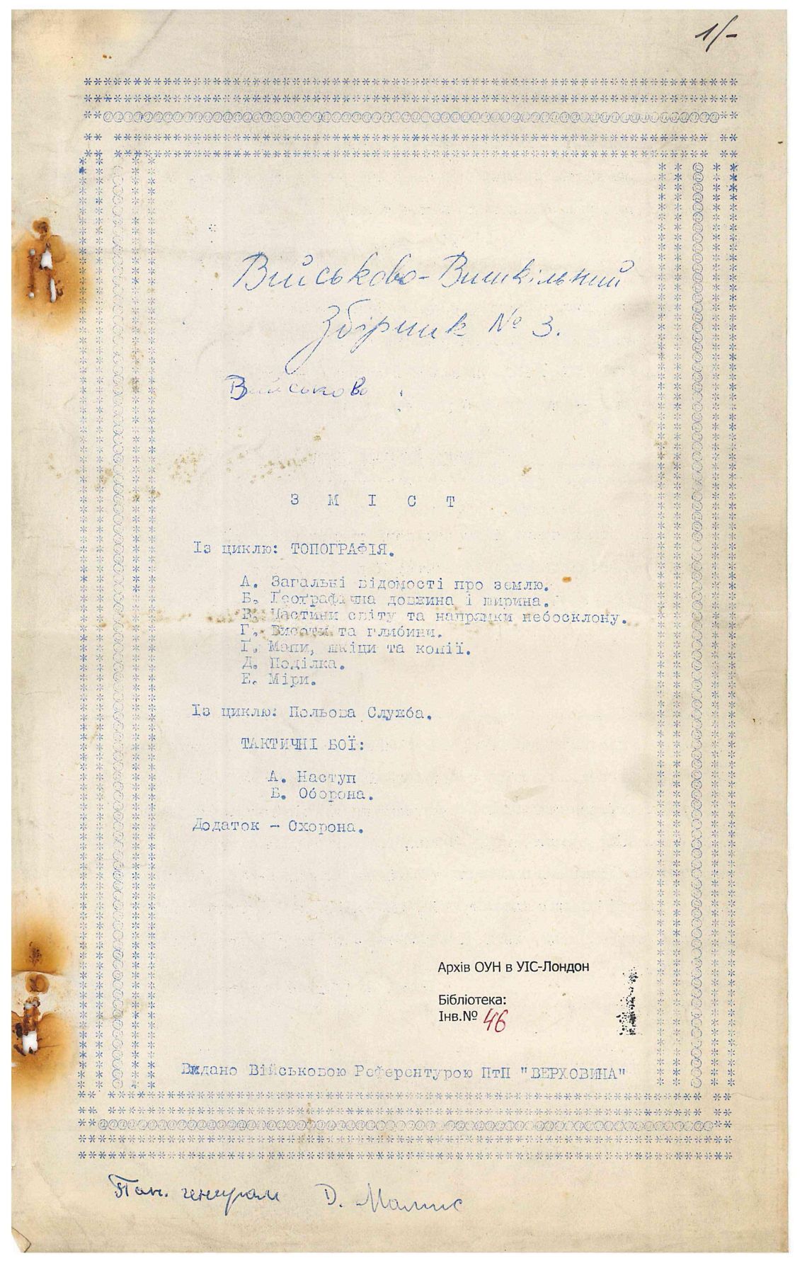 • Місце зберігання: Бібліотека Архіву ОУН в УІС - Лондон
