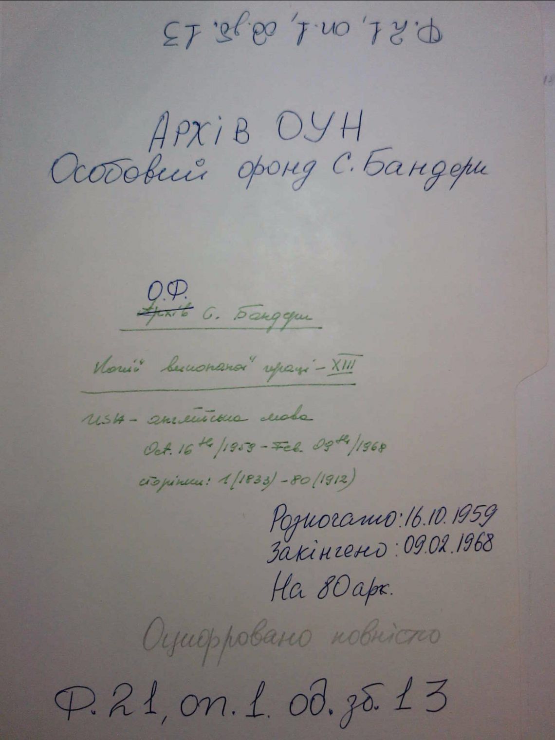 Матеріал зібраний членами і симпатиками ОУН по всьому світу. Упорядкований Тереновим Проводом ОУН в Канаді.