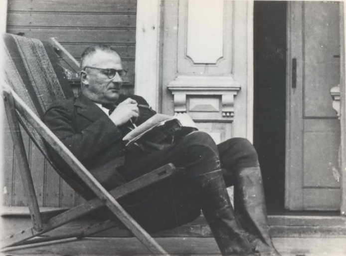 В кріслі (пише). Фото зроблено в США